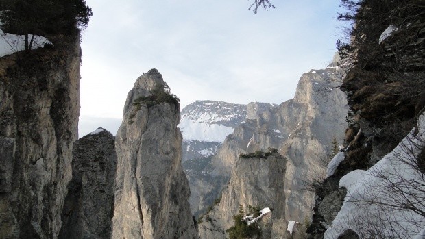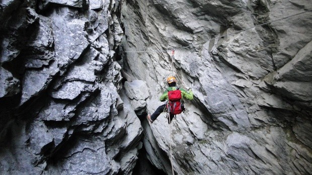 Hexensteig 20.05.2015 10:00 Fotos / Anderes Map Abfahrt mit der Bahn im Dunkeln Kalktürme beim Ausstieg am Pfaffen Abstiegsausicht Seilzug zum übersetzten Bank mit Aussicht Einstieg zum Klettersteig